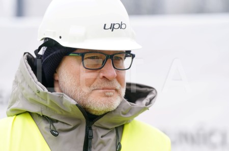 title="LETA - Aizsardzības ministrs Andris Sprūds (no kreisās) un Bauskas novada domes priekšsēdētājs Aivars Mačeks piedalās pasākumā, kurā notiek kapsulas un vēstījuma nākotnei iemūrēšana topošās artilērijas munīcijas modulāro pulvera lādiņu komplektēšanas ražotnes pamatos